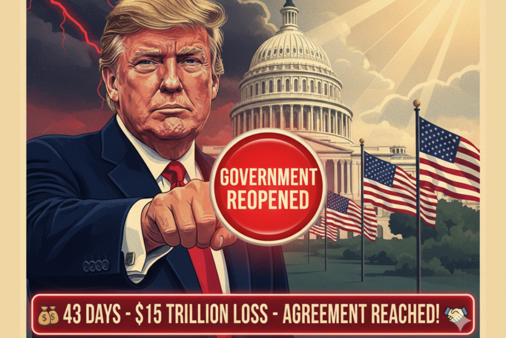 The United States has officially reopened its government after a historic 43-day shutdown. President Donald Trump signed a bipartisan funding bill that restores operations across all federal departments and agencies, marking the end of the longest shutdown in U.S. history.